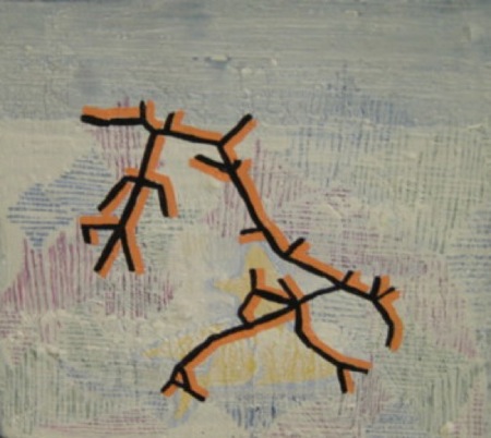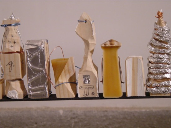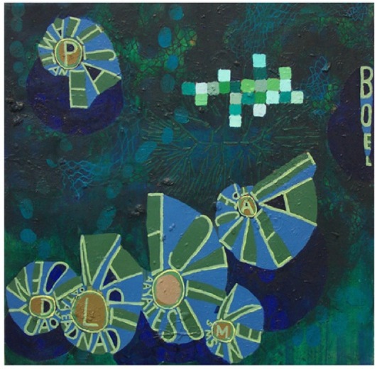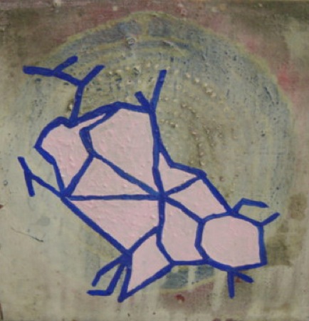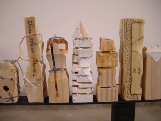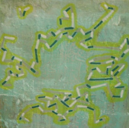 i began with a small group of paintings that would not have any visual reference to words or letters, using instead, a map as a visual template. i also began a long-term sculptural project related to a map of the moon, a set of drawings related to a text by hermann hesse, and a series of 26 sculptural objects related to the alphabet, my voice, and my beginnings of using a computer for my soundwork.