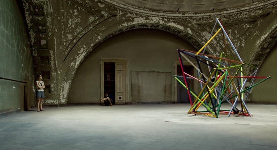 hidden city was an exhibition that took place in philadelphia in 2009. the exhibition paired each artist with a historical building that was either unrecognized or closed to the public. after doing several site visits, i decided to work with thomas u. walter’s 1837 building for girard college (a school originally for white orphans). i was taken with both the acoustic qualities of the large beaux arts domes and tile floors; as well as the grandness of the scale – which seemed counter-intuitive to the kind of intimate spaces i usually respond to. one of my main interests was in how the intimate nature of my work might challenge the scale of the space; although of course, also how the space might challenge the work.