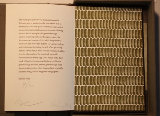 all of the works were inspired by a number of sources related to the space and its history, including: stephen girard’s stipulations for the architecture, as noted in his will, as well as the names of his entire fleet of merchant ships; benjamin franklin’s letters regarding the glass harmonica; lorenzo langstroff’s beehive experiments; and thomas u. walter’s notes and lectures on architecture.