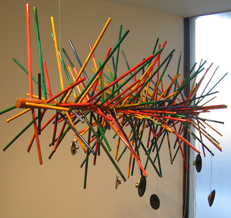 above the sand, flown and undone (levitation) is a collision of sorts – part sculpture and part sound piece – both birthed from connecting points of various similar inspirations: research on synesthesia and various color musical note equivalent lists, newspaper articles on gamelan music at the 1889 paris world’s fair, and a system for translating a few bars of classical music into building blocks for a sculpture.