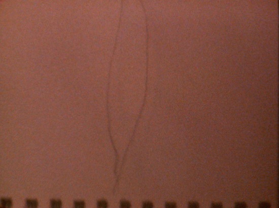 “the images drawn for the film were created in the melnitz theater at ucla, while watching the 1948 film: louisiana story – a film about the relationship between a family living on the louisiana bayou, and some oil workers. the film was known for its extended nature sequences, and the music of virgil thompson, which was the first film score to ever win a pulitzer prize for music. as we were walking into the theatre, i picked up a eucalyptus leaf from the ground outside the theater; and once the film began, i traced the eucalyptus leaf onto a small piece of paper for the length of time that a scene included no sound other than thompson’s music. as these scenes arrived, i frenetically traced the leaf’s form as many times as i could until the music stopped, or actual sounds appeared. of course, in the dark – staring at the film screen and not the paper, the resulting drawings were sometimes messy, awkward and included mistakes (such as when the hand veered off the paper). the drawings were then filmed in sequence to create a very archaic version of stop motion ‘animation’.”