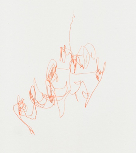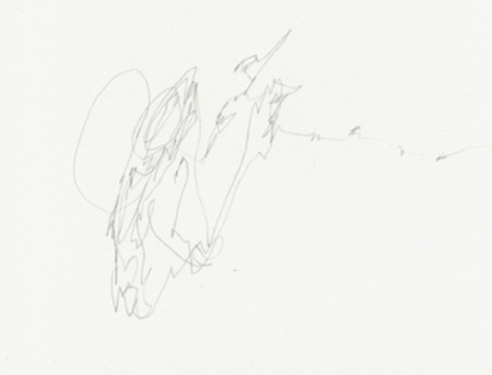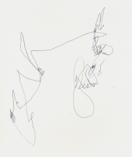 over the month of december 2004 i listened to morton feldman’s composition: piano and string quartet, every night, with the lights off, drawing until i fell asleep. sometimes i would listen and draw for the whole hour of the composition and sometimes i would fall asleep after only a few minutes. the drawings were made without being able to see, and using the sounds of feldman’s composition to determine the movements of my hand holding a pencil against a piece of paper. in every case, i drew and listened until i fell asleep, generally being woken up by the discovery of a pencil lodged in my back!