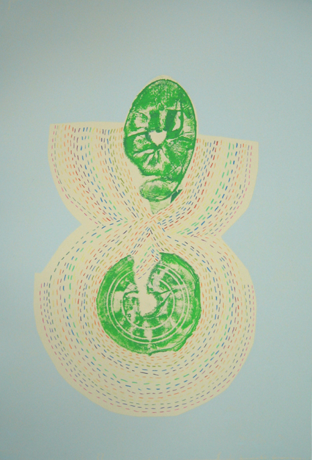 in june of 2006 i was invited up to san francisco for a residency at aurobora press. i worked for 8 days on a series of works on paper, printing with a master printer during the day using various monotype processes, and working with drawing and handwork at night. i ended up with 22 finished works of various sizes.