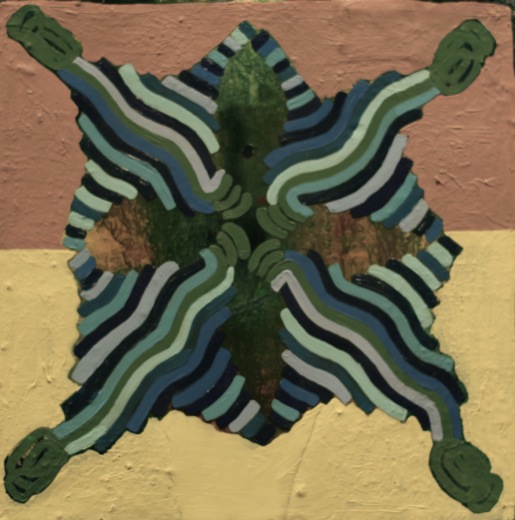the small paintings began with the discovery of a 1950’s plastic model kit for children, that explained how the sense of touch worked (and hence, the title for the small works was, ‘the anatomy of touch’).  in the paintings, i used various parts of the kit (magnified parts of a fingertip) as well as the instruction sheet, as building blocks for abstract images.