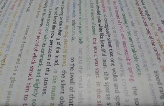 rather than attempting to re-create an illustration of mood or “sound” of the text, or a work that fits conceptually cleanly into a single resolve, related to the text; the piece attempts to open the narrative and time pace of the book, to offer a group of pools of information – so that one is not looking for an answer, but simply having an experience with sound (not only in audio, but through text and image).