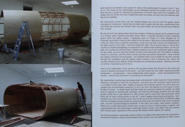 Something more to look at is the catalogue of ‘Ear(th)’, which has photographs of the installation and a lot of text. The installation uses 80 glockenspiel bars and robot arms to strike them, using a score made related ‘of the earth’s movement during an earthquake’. The piece on the CD is the unaltered field recording of the installation recorded in the exhibition space. Here too, but then twice as long as the other CD, the work is of an entire minimalism and without any drama or movements. Designed to be played at a low volume this work, it resembles Christina Kubisch’ CDs on Semishigure. Very minimal, almost meditative in approach, this is an even more minimal work than ‘Transmissions’, and like Kubisch, this works best when played at a soft volume for a day or two – that is if you have the time.