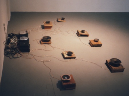 during 2000 and 2001 i created a number of sound installations: including bird forms at the ucla hammer museum; o.t.r. at the en red o festival barcelona; shells at the transmissions festival in chicago; forms of paper at the hollywood branch of the los angeles public library; dry landscape at raid projects fullerton california and thought i couldn’t breath at raid projects los angeles, hanging garden at pasadena city college art gallery, and culminating with the installation schindler house at the mak center for art and architecture los angeles.