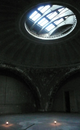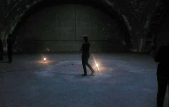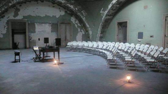 a year before the installation and exhibition i was invited to create work for the space for a single evening. this event, in 2008, was really a way of setting the table and/or starting to get a sense of how wound and intimate sound in particular would react to the space. thus, i showed a silent film, i did a sound performance, and i created two small sound installations.
