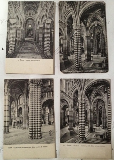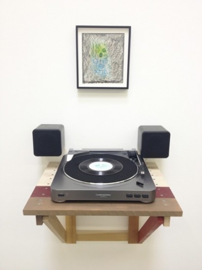 the the 2013 exhibitions, i created a number of small bodies of work within the larger whole, featuring: a 4 turntable work that uses some of the symbols found in benjamin’s notebooks as graphic notation to generate sound actions; a series of small paintings based on a postcard from benjamin’s postcard collection; a series of large abstract body prints that utilized a series of colored marks from one of benjamin’s notebooks to determine the colors in the drawings; a series of plaster and cardboard sculpture with mirrors related to benjamin’s grave site; large scale paintings utilizing various graphic mistakes in the notebooks towards the building of imagery; and lastly a series of small drawings related to other graphic aspects of benjamin’s notebooks.