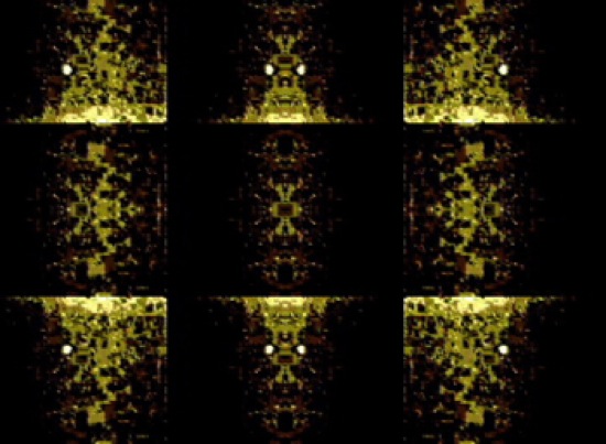basically, i worked with a one minute black and white video of the genesis space probe plummeting towards earth. the footage was extremely lo-res, and all of the manipulation was done with basic filters in an early version of imovie -fragmenting and looping the footage, and using mirroring and color enhancement filters.