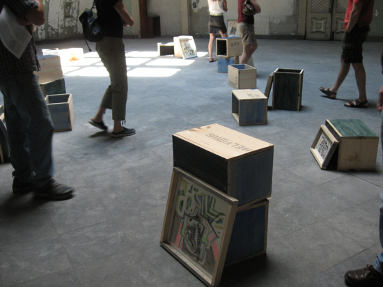 these drawings were part of a three room installation at girard college in philadelphia – the rooms had not been open to the public in nearly 100 years. the building was a school founded (and funded) by merchant stephen girard and was designed by thomas u. walter (who also designed the us capitol dome). the entire installation consisted of a letterpress text work in one room, a large sculptural form with sound related to girard’s intentions for the architectural commission for the building, and a room containing numerous hand made crates, with sound and also a series of drawings.