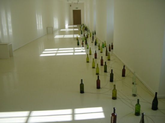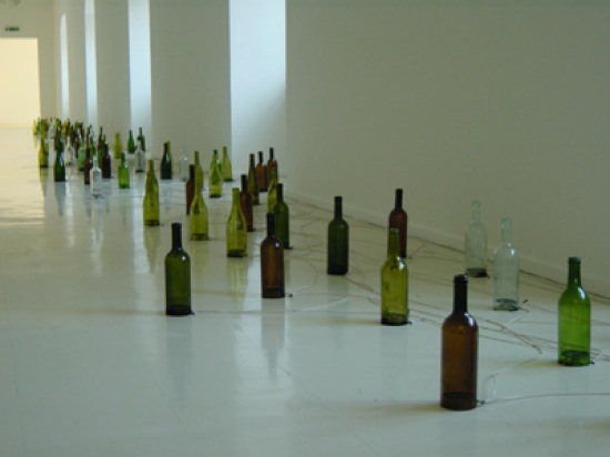 moon field consists of 100 glass bottles, each hand cut so that a small loudspeaker could sit beneath the glass – allowing the bottles to amplify the sound like a speaker cabinet.