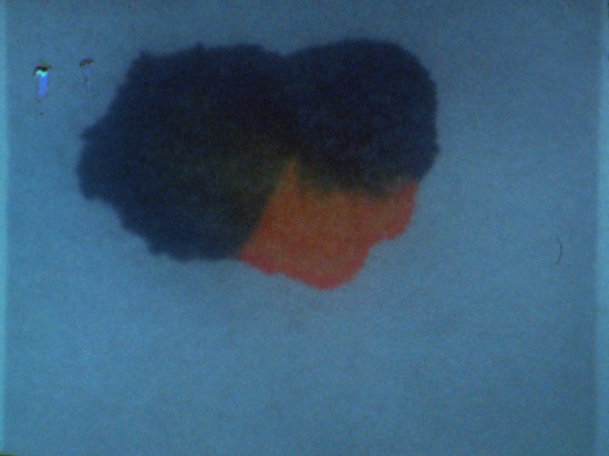 the title “original form” was taken from a fragment of the description of the film in the program. what inspired me, was the idea that a film could be made as a direct result of a simple process – a process that could have been done many times in many theatres during many films; but done just this once, and hence, eternally connected to this showing of this film in this theater. i like to think of the result as also having a visual resonance to the original film, and when i first saw the images projected, i couldn’t help but see the “blob” as a kind of abstract aura surrounding greta garbo’s head… her presence so ethereal and magical within this film-like a fluctuating glowing orb.”
