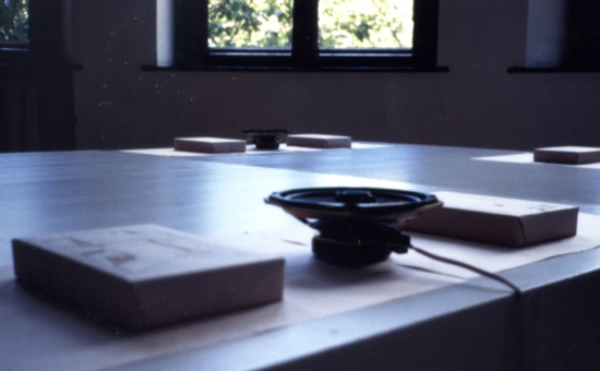 the piece was inspired by hearing a recording of james joyce reading/speaking a fragment of finnegan’s wake. the sound was composed using fragments of joyce’s voice that were edited, looped and electronically transformed (via guitar pedals and other analog electronics). while the soundscape was made up of audible words, the processing allowed the words to disintegrate into a kind of pure sound or sound beyond words (and voice). the idea was to imbue an already difficult to undestand text to unfold into pure abstraction.