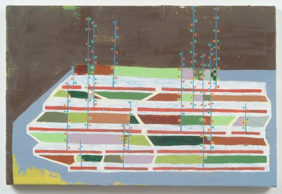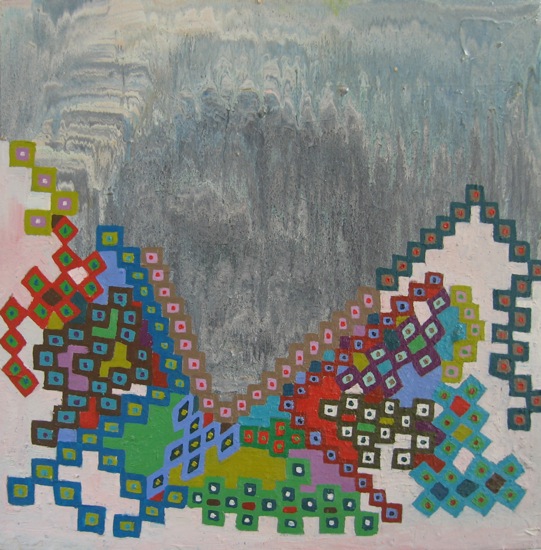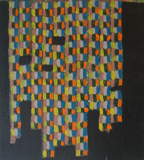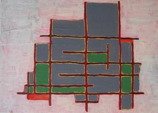 the first group of silent world paintings began in 2002 and continued through 2003. by that time, i began to move away from the overtly linear building blocks to explore more intuitive and awkward forms, that would appear as a stronger presence as i moved towards the middle of the body of work. by that time i began to expand the “a = 1 inch” rule to allow “a” to equal one anything: inch, line, color, minute, etc.