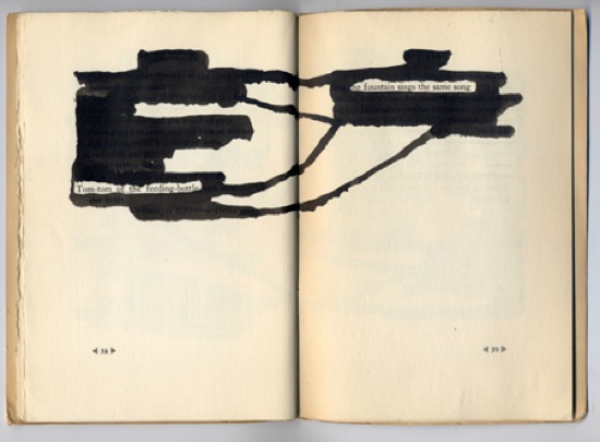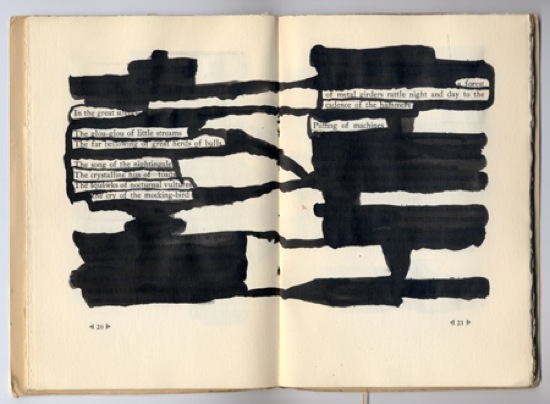 at some point i mistakenly thought the title “some ultra modern french poets” could become the word sounds by erasing many of the letters in sequence, so i blacked them out with ink only to realize that i had not spelled sounds but soudns