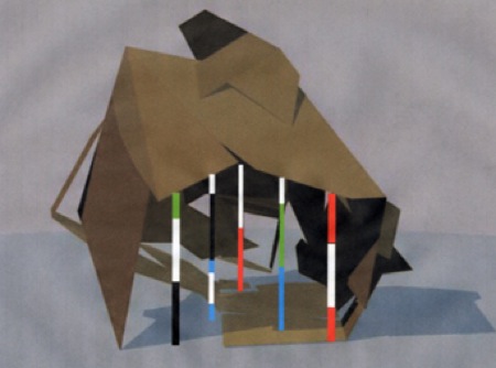 once the object was in the cad program, the architect was able to generate drawings, and then the sculpture was realized by a group of carpenters who mainly build stage sets – which became an asset as the final construction involved a lot of improvisation.